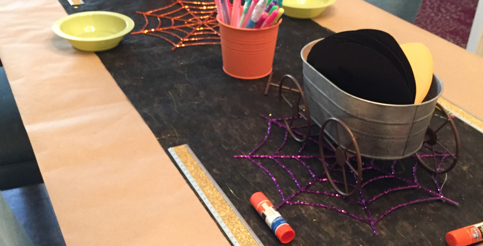 We gave the kids a choice of a witch mask, Frankenstein mask, cat mask and/or pumpkin mask. This group loved the cat mask the most which interestingly was the most challenging because of the whiskers, ears, snout, etc. 2nd place was the witch! Little P made the best Pumpkin mask ever! What was the cutest was there was this glass door separating a playroom from the living/dining area...We had no idea,but when setting up we had decorated it with our PTNJ banner and the samples of masks they could make, never dreaming how much fun it would provide! This door became like the cutest stage for the kids. They dressed up in their costumes, put their masks up to their face, stood behind the door and it was so much fun seeing them laugh and play! Seeing them run around with their masks made us feel so good!